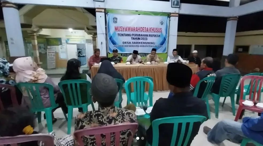 Sambutan Kepala Desa Sarikemuning dalam acara Pembagian Sertifikat Tanah PTSL di desa sarikemuning bersama BPN (Badan Pertanahan Nasional) beserta Pokja PTSL Desa Sarikemuning. ...