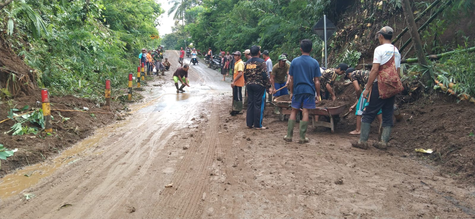 Kandangan, Sejak pagi tadi Banser Sarikemuning dipimpin langsung Achsanul Choliqin selaku Ketua Ansor Sarikemuning berpartisipasi dalam pembersihan dua titik longsor yang menutup jalur ...