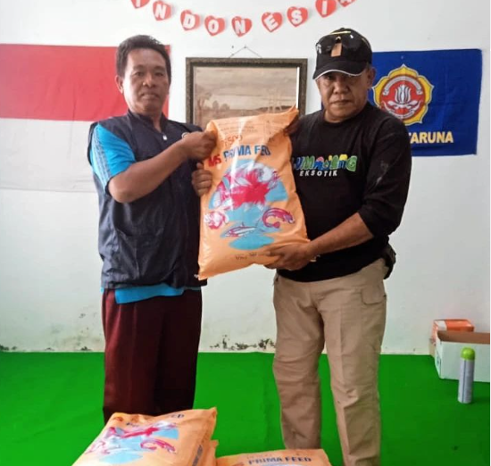 Penerimaan bantuan bibit nila sebanyak 100 ekor dan pakan sebanyak 6 zak dari dinas sosial kepada Karang Taruna Garuda Mas Desa Sarikemuning yang ...