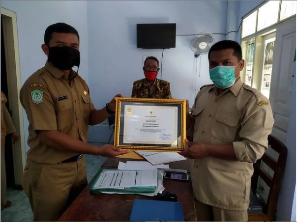 Serah Terima sertifikat penghargaan dari BPRD Kab. lumajang kepada Pemerintah Desa Sarikemuning (PBB - P2) tahun 2020